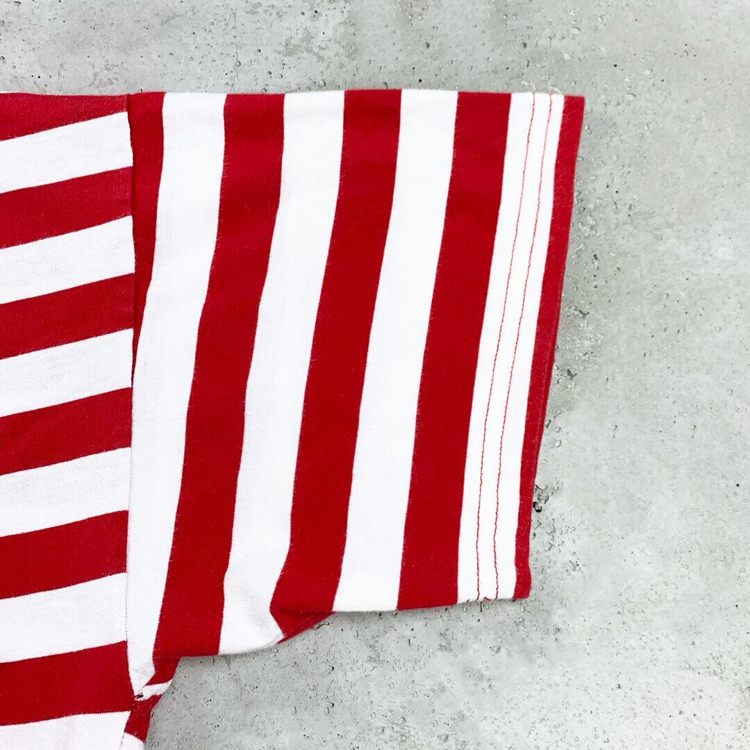 カラーはレッドにホワイトのボーダー柄です。